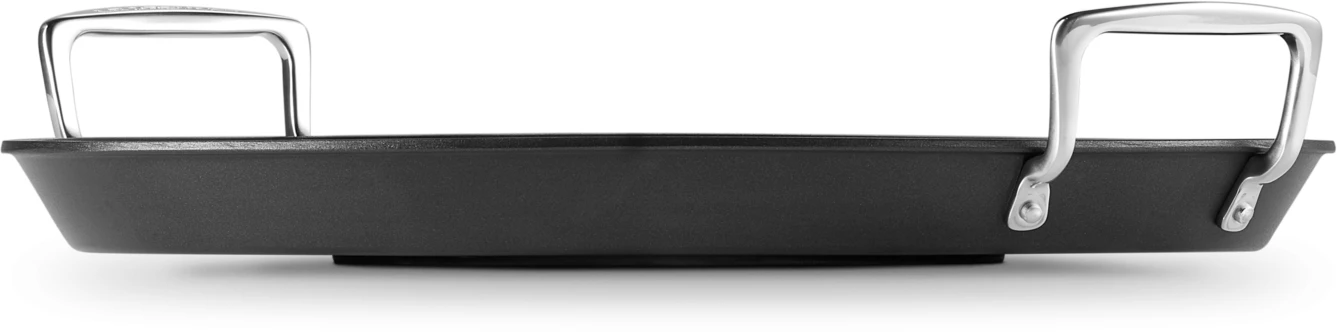 De Le Creuset TNS-pan is gemaakt van gesmeed aluminium. Dit zorgt voor een optimale warmtespreiding. Dankzij de stalen schijf in de bodem is de pan geschikt voor alle verschillende warmtebronnen. De handgrepen hebben een professionele stijl en zijn bevestigd met roestvrijstalen klinknagels voor een superieure, veilige bevestiging. Bovendien hoef je geen zorgen te maken dat de handgrepen heet worden: doordat de binnenkant hol is, worden de handgrepen minder snel warm.